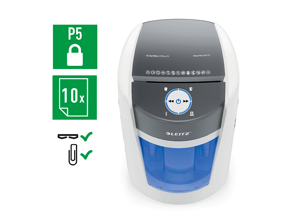 Destructora de documentos leitz optimax 350 small office p5 capacidad corte 8 hojas destruye grapas clips